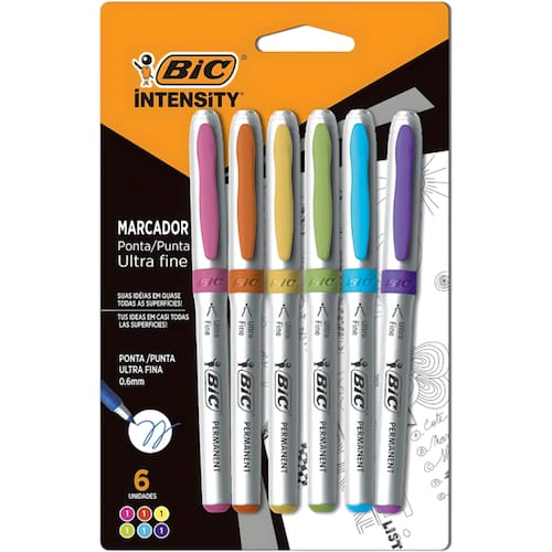O Marcador BIC da linha Intensity, tem uma ponta superfina para trabalhos complexos de alta precisão. Perfeito para escrever em pequenos objetos e marcar com precisão detalhes em etiquetas e pastas. A ponta de 0,6 mm destina-se a escrita de alta precisão e desenhos complexos. Funciona em todos os tipos de superfícies lisas e ásperas como vidro, metal, papelão, fotos, plástico, etiquetas e CD.