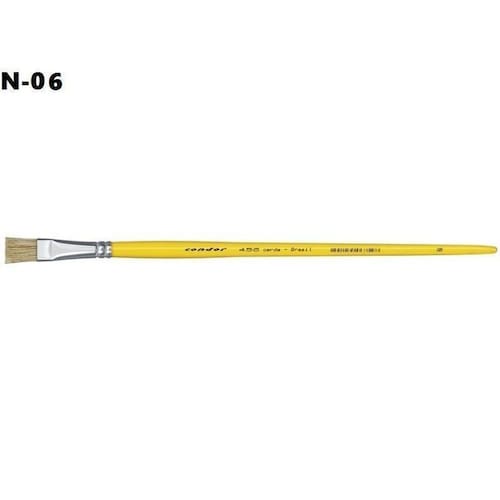 Pincel utilizado para pinturas em madeira, cerâmica, gesso, tela e outros materiais. Cerdas em pêlo branca importada, cabo longo em madeira na cor amarela, virola em alumínio e formato chato. Atenção: imagem meramente ilustrativa. Pode ocorrer mudanças no tom da cor para o produto real ou mudança na embalagem sem aviso prévio por parte do fornecedor/fabricante.