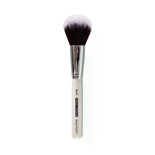 Pincel Macrilan W112 especialmente desenvolvido para aplicação de pó mineral, pó facial compacto, solto ou iluminador por toda a face e corpo. Feito com cerdas arredondadas e macias para uma aplicação suave e uma maquiagem uniforme.