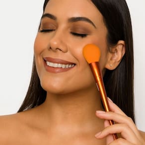 Aplicação otimizada de pó facial, bronzer e blush, economizando tempo e produto.
