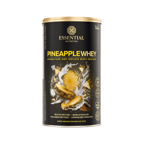 O Pineapple Whey Essential Nutrition é a combinação do abacaxi com a água de coco, o tornado uma opção deliciosamente refrescante e nutritiva, além de proteica. Junto ao blend de Whey Protein Isolado e Hidrolisado também está o colágeno hidrolisado em peptídeos, que agregam valor à fórmula e complementam a ação do produto.