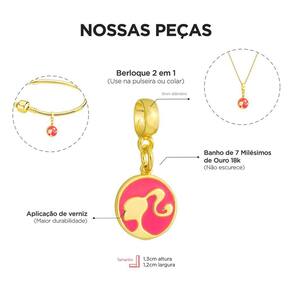 MODELO: Berloque da barbie rosa redonda banhado com 7 milésimos de ouro 18k.