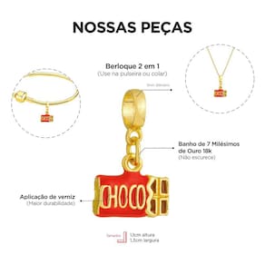 MODELO: Berloque de barra de chocolate banhado com 7 milésimos de ouro 18k.