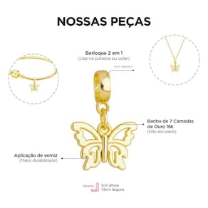 MODELO: Berloque de borboleta banhada com 7 milésimos de ouro 18k.