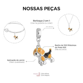 MODELO: Berloque do cachorro Beagle banhado com 100 milésimos de prata 925.