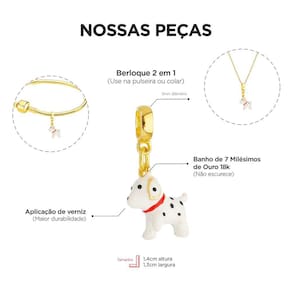 MODELO: Berloque do cachorro Dálmata banhado com 7 milésimos de ouro 18k.
