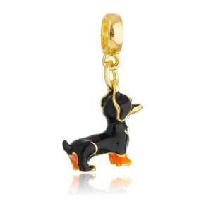 MODELO: Berloque do cachorro Salsicha Dachshund banhado com 7 milésimos de ouro 18k.
