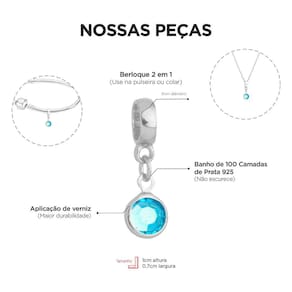 MODELO: Berloque de cristal strass azul claro banhado com 100 milésimos de prata 925.