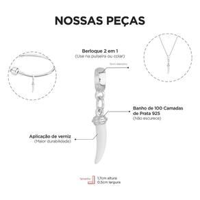 MODELO: Berloque de dente de sabre banhado com 100 milésimos de prata 925.