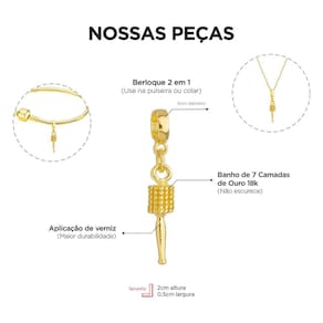 MODELO: Berloque de Escova De Cabelo com 7 milésimos de ouro 18k.
