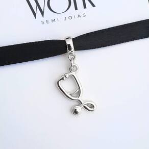 MODELO: Berloque Estetoscópio Medicina Enfermagem banhado com 100 milésimos de prata 925.