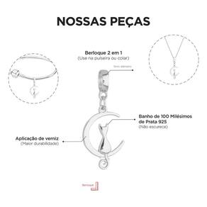 MODELO: Berloque de gato na lua banhado com 100 milésimos de prata 925.
