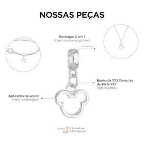 MODELO: Berloque vazado do mickey da Disney banhado com 100 milésimos de prata 925.