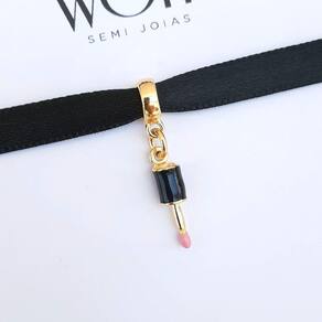 MODELO: Berloque Pincel de Maquiagem banhado com 7 milésimos de ouro 18k.