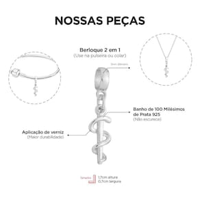 MODELO: Berloque de Símbolo da Profissão Medicina banhado com 100 milésimos de prata 925.