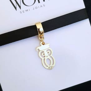 MODELO: Berloque de Coruja Símbolo da Profissão Professora o banhado com 7 milésimos de ouro 18k.