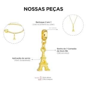 MODELO: Berloque de Torre Eiffel Paris Viagem com 7 milésimos de ouro 18k.