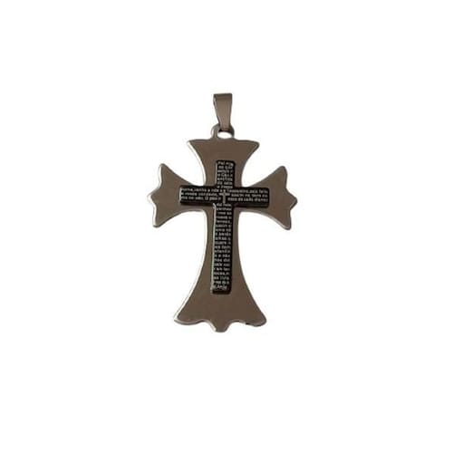 Pingente Crucifixo Niquelado 42mm com Oração do Pai Nosso Modelo: Mod. 01 - Cruz Interna Cinza Pingente Crucifixo Niquelado 42mm com Oração do Pai Nosso