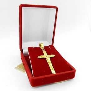 Pingente Cruz Cristo 45mm Folheado Ouro Pi148 Pingente Cruz Cristo 5Gr 25x45mm Passante 6mm Beleza e Qualidade Sempre.Descrição Técnica:- Produto com banho super resistente- Não descasca, não perde a cor, qualidade garantida- Grande tempo de durabilidade- Acompanha Embalagem/Porta Jóia- Todas as Fotos são Reais do ProdutoContra Indicações:- Não usar creme, shampoo, perfume, protetor solar e outros cosméticos por cima da jóia.- Evitar banho de mar (Devido a oxidação da água Salgada)- Evitar banho de piscina (Devido a oxidação do Cloro e outros produtos)