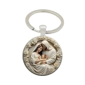 • Design da Virgem Maria e da Sagrada Família: este chaveiro apresenta uma imagem elegantemente esculpida da Virgem Maria com o Menino Jesus e José, representando um belo símbolo de fé. Perfeito para cristãos e seguidores religiosos. • Artesanato de qualidade premium: feito de materiais duráveis com detalhes finos, este pendente de chaveiro captura a sacralidade da Sagrada Família. Ele foi projetado para durar e manter sua beleza. • Ideal para presentes religiosos: este pingente é um presente ideal para eventos religiosos como Natal, Páscoa ou para qualquer pessoa que aprecie o simbolismo cristão. Um presente atencioso para crentes e pessoas espirituais. • Acessório versátil de chaveiro: use este pingente como chaveiro, colar ou peça de exibição. É um acessório versátil que dá um toque espiritual aos itens essenciais do dia a dia, como chaves, bolsa ou carro. • Perfeito para colecionar: uma linda peça colecionável para quem aprecia símbolos religiosos e a Sagrada Família. É uma forma significativa de levar sua fé com você, aonde quer que você vá.