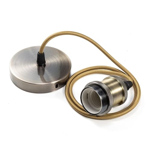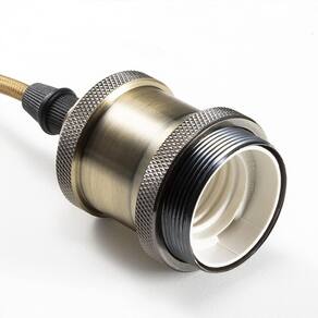 Luminária Soquete Vintage Color AntiguoStyle Soquete RetroLampara ideal para ampolas de LED Edison ou filamento de carbono Ideal para decoração de diferentes lugares. Feita à mão, ela se presta magnificamente à decoração residencial e também às necessidades de iluminação industrial. Sooket mede 45 mm de largura x 85 mm de altura Cabo Fonte de luz Dorado colorida de 1,2 m (E27) Não inclui ampola/material metálico Inclui cabo têxtil e cobertura para fixar o teto
