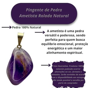 Pingente de Pedra Ametista Rolada Natural Pingente de Pedra Ametista Rolada Natural