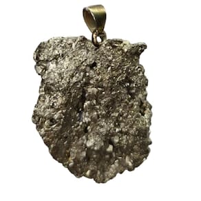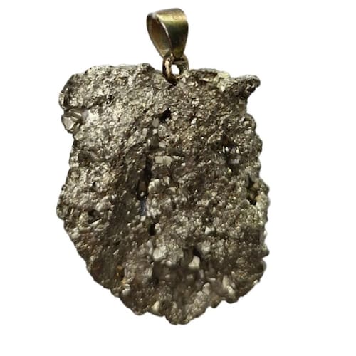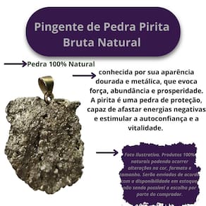 Este pingente é feito com uma pedra de pirita bruta natural, conhecida por sua aparência dourada e metálica, que evoca força, abundância e prosperidade. A pirita é uma pedra de proteção, capaz de afastar energias negativas e estimular a autoconfiança e a vitalidade. Sua textura única e formas irregulares garantem um design autêntico e cheio de personalidade, ideal para quem busca um acessório com significado profundo e estilo ousado.