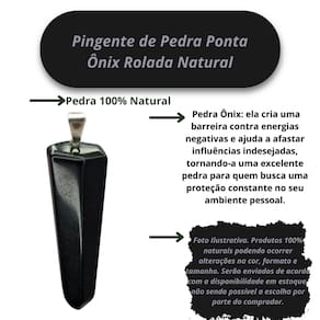 Pingente de Pedra Ponta Ônix Rolada Natural Todos os Cristais são de origem natural, por essa razão, apresentam variações de cor e tamanhos e por serem pedras naturais podem conter fissuras, ranhuras, veios e outros em razão do processo de extração, porém todos mantém excelente qualidade!