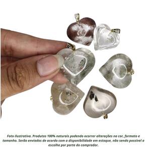 Sinta a energia de cura e a beleza das pedras com o Pingente de Pedra Quartzo Cristal com Pedras Mistas Coração! Marca: Meta Atacado