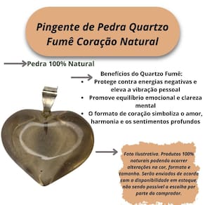 Pedra Quartzo Fumê Natural de alta qualidade Design de Coração, simbolizando amor e proteção Acessório elegante e versátil, ideal para todos os estilos Perfeito para quem deseja uma energia mais equilibrada e serena