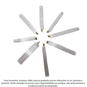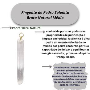 Este pingente é composto por uma peça de selenita bruta natural de tamanho médio, conhecida por suas poderosas propriedades de purificação e limpeza energética. A selenita é uma pedra altamente valorizada no mundo das pedras naturais por sua capacidade de limpar e equilibrar as energias ao redor, promovendo paz e tranquilidade. Sua textura única e aspecto rústico garantem um design autêntico e cheio de personalidade. Ideal para quem busca proteção espiritual e uma conexão mais profunda com sua energia interior.