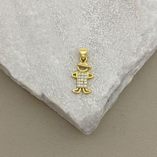 Pingente Filhos Cravejado com Zircônia Menino Banhado a Ouro