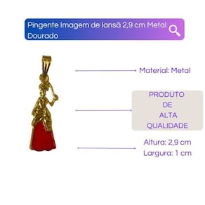 O Pingente Imagem de Iansã 2,9 cm Metal Dourado da Bialluz é de alta qualidade feitos de forma artesanal com muito carinho. É perfeito para qualquer pessoa. Cheia de boas energias e carregada de fé nosso pingente emanará muita paz em sua vida