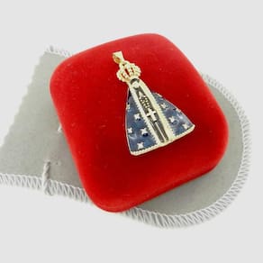 Pingente Nossa Senhora Aparecida 30mm Folheada Ouro Pi166A Pingente Nossa Senhora Aparecida 20x30mm 3Gr - Passante 3mm - Marca: Wnbijouterias - Modelo: Nossa Senhora Aparecida - Passante: 3mm - Altura: 30mm - Largura: 20mm - Peso: 3Gr - Acompanha Embalagem/Porta Jóia - SKU Vendedor: Pi166A Descrição Técnica: - Produto com banho super resistente. - Processo de Folheação em 3 Camadas de Ouro 18k= 750 - Não descasca, não perde a cor, qualidade garantida - Grande tempo de durabilidade. - Acompanha Embalagem/Porta Jóia - Todas as Fotos são Reais do Produto Acompanha: Certificado de - apenas para descascamento do banho da jóia - não cobre defeitos de mau uso, aranhões ou quebra de partes da jóia Contra Indicações: - Não usar creme, shampoo, perfume, protetor solar e outros cosméticos por cima da jóia. - Evitar banho de mar Devido a oxidação da água Salgada - Evitar banho de piscina Devido a oxidação do Cloro e outros produtos O que você sempre ganha em nossa loja - Qualidade Banho Super Resistente - Antialérgico Não usamos Níquel em nosso banho - Beleza e Acabamento Caimento perfeito ao usar