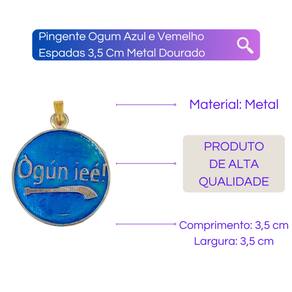 Pingente Ogum Azul e Vemelho Espadas 3,5 Cm Metal Dourado