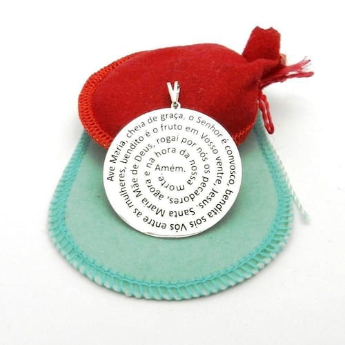 Pingente Oração Ave Maria 4cm Folheada Prata Pi122 Pingente Oração Ave Maria 4cm 3Gr - Passante 3mm - Marca: Wnbijouterias - Pingente: Oração Ave Maria 4cm 3Gr - Modelo: Circulo Escrito e Resinado - Largura: 4cm - Peso: 3Gr - Acompanha Embalagem/Porta Jóias - SKU Vendedor: Pi122 Descrição Técnica: - Produto com banho super resistente. - Processo de Folheação em varias camadas Prata Pura 1000 - Não descasca, não perde a cor, qualidade garantida - Grande tempo de durabilidade. - Acompanha Embalagem/Porta Jóia - Todas as Fotos são Reais do Produto Acompanha: Certificado de - apenas para descascamento do banho da jóia - não cobre defeitos de mau uso, aranhões ou quebra de partes da jóia Contra Indicações: - Não usar creme, shampoo, perfume, protetor solar e outros cosméticos por cima da jóia. - Evitar banho de mar Devido a oxidação da água Salgada - Evitar banho de piscina Devido a oxidação do Cloro e outros produtos O que você sempre ganha em nossa loja - Qualidade Banho Super Resistente - Antialérgico Não usamos Níquel em nosso banho - Beleza e Acabamento Caimento perfeito ao usar Ean: 7896182102730