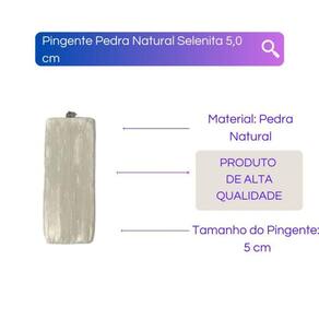 Pingente Pedra Natural Selenita 5,0 cm Pingente Pedra Natural Selenita 5,0 cm O Pingente Pedra Natural Selenita da Bialluz é de alta qualidade feitos de forma artesanal com muito carinho. É perfeito para qualquer pessoa. Cheia de boas energias e carregada de fé nosso pingente emanará muita paz em sua vida Enviamos a seu produto em até 24 horas após a confirmação de pagamento Tamanho: 5,0 cm Material: Pedra Natural Caso tenha alguma dúvida nos mande mensagem que respondemos rapidinho para te ajudar da melhor forma possível Marca: Meta Atacado