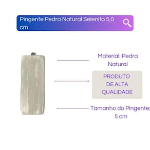 O Pingente Pedra Natural Selenita da Bialluz é de alta qualidade feitos de forma artesanal com muito carinho. É perfeito para qualquer pessoa. Cheia de boas energias e carregada de fé nosso pingente emanará muita paz em sua vida