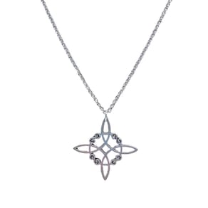 Colgante Nudo de Bruja — Aço Inoxidável O colgante nudo de brujas é uma opção encantadora. O nude de bruxas é um símbolo antigo e significativo que representa a união de energia e proteção. É uma peça de joalheria durável e resistente que complementa perfeitamente o estilo de nudez de bruxas. O colgante nude de brujas pode ser como um amuleto de proteção ou como uma declaração de estilo único. Lúcelo como uma peça individual ou combiná-lo com outros adesivos para criar uma aparência personalizada e significativa. · Proteção: El nudo de bruja possua poderes protetores e atue como um amuleto para alejar as energias negativas e trazer segurança. · Unidade e eternidade: El entrelazado del nudo de bruja simboliza la interconexión de todas las cosas, la unidad de lo divino y lo terrenal, así como la continuidad y eternidad del ciclo de la vida. · Amor y amistad: El nude de bruja es símbolo de amor eterno y vínculos profundos. Se asocia con la amistad durera, el amor incondicional y la lealtad. · Espiritualidade: El nude de bruja se relaciona con la espiritualidad, representando la unión del corpo, la mente y el espíritu, assim como la conexión con lo divino y lo sagrado. · Equilíbrio y harmonia: El entrelazado simétrico del nudo de bruja representa o equilíbrio e a harmonia na vida, assim como a necessidade de manter um equilíbrio entre os diferentes aspectos de um mesmo e do ambiente. Se você se sente atraída pelo nu de brujas, lúcelo com orgulho e aproveite seus benefícios estéticos e simbólicos! Características: Cor: Plateado Tamanho do cabo: 30 x 30 mm.Peso: 7,3 g Tipo de cadeia: Tradicional - 47 cm. Material: Aço inoxidável Benefícios do aço inoxidável: · Durabilidade: O aço inoxidável é altamente resistente à corrosão, à oxidação e ao desgaste, o que o torna ideal para peças de joalheria que se usam diariamente. · Hipoalergênico: O aço inoxidável é uma excelente opção para pessoas com pele sensível ou alergias, desde que hipoalergênico. · Fácil manutenção: O aço inoxidável é muito fácil de cuidar e manter. Não requer polimento nem limpeza especial, simplesmente se pode limpar com água e sabão suave para manter seu brilho e aparência.