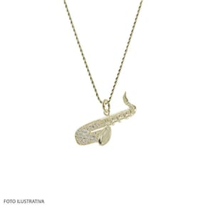 Pingente em Prata Revestido com Ouro 18K Saxofone com Zircônia 25x14mm