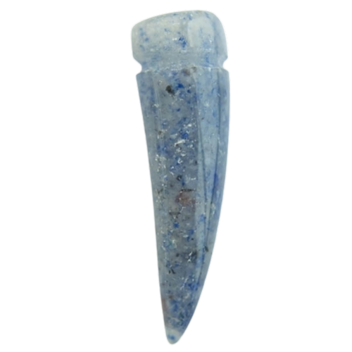 Pingente Pedra Quartzo Azul Dente de Dragão Difusor para Aromaterapia Ranhurado, Difusor com Lapidação Dente com Abertura na Base e Ranhura no corpo para Ajudar na Fixação do Colar Peça para fazer seu proprio pingente Amarrado com Cordão encerado ou arame Pingente não Montando Pedra Genuina com origem garimpo lapidação Manual