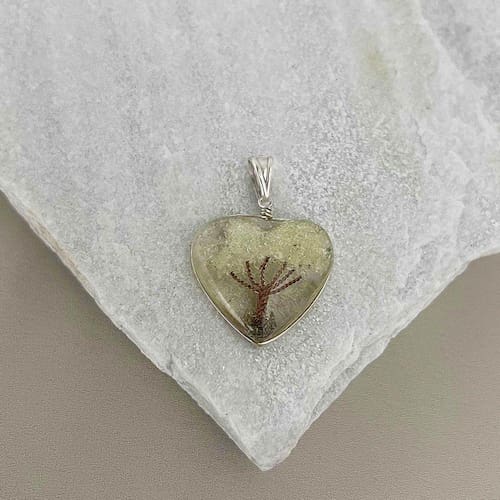 Pingente Resinado Coração Árvore da Vida em Prata 925