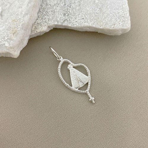 Pingente Terço Nossa Senhora Aparecida em Prata 925