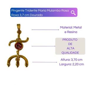 Pingente Tridente Maria Mulambo Rosa Roxa 3,7 Cm Dourado