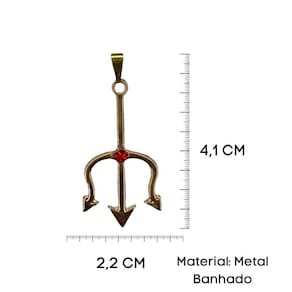 Pingente Tridente Pomba Gira com Strass 4,1 cm Dourado Este pingente pode colocar em correntes, brincos, Guias e pulseiras. Presenteie uma pessoa querida com os nossos produtos Um luxo Confeccionado com excelente padrão de acabamento e brilho, metal fundido e banhado.