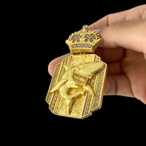 Pingente Tubarão Coroa - Banhado a Ouro 18k Informações do seu Pedido: Acompanha: Saquinho de organza para armazenar sua joia Enviado em caixa Cupom de desconto para a próxima compra Flyer com outros produtos Cartão de contato para futuras dúvidas Carta de agradecimento Adesivo da marca Especificações: Material: Composto de ligas de metais, eficazes para absorção e fixação do OURO no banho, finalizado com verniz protetor. Tonalidade: Cor idêntica ao ouro maciço puro. Produção: Manual. Tipo de Banho: Peças banhadas a ouro 18k com 10 camadas grossas de ouro 18k. Ao final, recebem uma camada protetora de verniz antialérgico . Elos: Soldados Dependendo do modelo . Pedras Cravejadas: Zircônia brilhante Quando o produto é cravejado . Tamanhos Disponíveis: Cordão Masculino: 60cm e 70cm 70cm enviado por padrão, consulte disponibilidade para 60cm via chat . Cordão Feminino: 45cm e 50cm 50cm enviado por padrão, consulte disponibilidade para 45cm via chat . Obs: Não são todos os modelos que temos tamanhos femininos, Consulte. Pulseiras: 18cm, 19cm, 20cm, 21cm, 22cm, 23cm 21cm enviado por padrão, consulte disponibilidade para outros tamanhos via chat . Espessura recomendado tamanho Cordão/Pingente: P: 1mm a 4mm M: 4mm a 8mm G: 6mm a 13mm GG: 12mm a 18mm Dúvidas e Informações: : 6 meses termos enviados com o produto . Prazo de Entrega: Envio em até 24 horas úteis após a confirmação do pagamento. Recomendações de Uso: Para garantir a longevidade e o brilho duradouro das suas semi-joias ToJoia18k, recomendamos alguns cuidados simples: Evite contato com produtos químicos, como perfumes espere secar para colocar a peça e produtos de limpeza. Evite contato com shampoo, condicionador e atividades físicas de alto suor. Armazene-as em local seco e seguro, preferencialmente em embalagem macia, para evitar arranhões. Pode usar no mar e piscina, mas lave com água corrente e sabão líquido neutro após o banho. Por que Comprar Conosco Descubra as deslumbrantes semi-joias banhadas a ouro 10 milésimos da ToJoia18k. Se você busca acessórios luxuosos que combinem estilo, qualidade excepcional e um toque de elegância, sua busca termina aqui. Cada peça da nossa coleção é cuidadosamente fabricada com um banho de ouro 10 milésimos, garantindo um acabamento impecável e brilho duradouro. Nossas semi-joias são projetadas para elevar qualquer visual, seja para uma ocasião especial ou para o dia a dia. Apresentamos designs exclusivos e sofisticados, desde brincos encantadores a colares deslumbrantes e anéis elegantes. Combinando artesanato excepcional e detalhes requintados, cada semi-joia é uma obra-prima que impressiona. Ao adquirir uma semi-joia ToJoia18k, você está investindo em qualidade e estilo. Nossas peças são feitas com materiais premium, garantindo durabilidade e resistência ao desgaste. Com os cuidados adequados, você poderá desfrutar do brilho radiante por muitos anos. Aguardamos sua compra. Você não irá se arrepender Agora, que comece a nossa história. Obs: Descrição PADRÃO para todos os anúncios