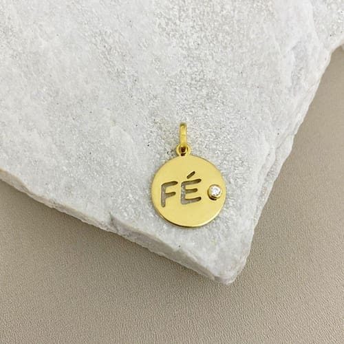 Pingente Vazado Fé com Ponto de Luz de Zircônia Banhado a Ouro