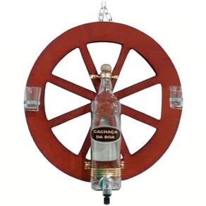Pingometro de parede decorativo roda de carroça em madeira 1,1l com 2 copos de dose 55ml é super indicado para guardar a sua bebida favorita cachaça e/ou vinhos conservando suas características e temperatura por mais tempo. Além de decorar o seu bar, sua casa, cozinha, salas em geral, áreas gourmets, área da churrasqueira e muito mais com muita criatividade e estilo. Abra sua cachaça e/ou vinho e coloque dentro deste belíssimo pingômetro, e convide seus amigos para compartilhar este momento ímpar, sendo também uma ótima opção de presente.