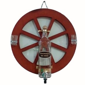 Pingometro de parede decorativo roda de carroça em madeira 1,1l com 2 copos de dose 55ml é super indicado para guardar a sua bebida favorita cachaça e/ou vinhos conservando suas características e temperatura por mais tempo. Além de decorar o seu bar, sua casa, cozinha, salas em geral, áreas gourmets, área da churrasqueira e muito mais com muita criatividade e estilo. Abra sua cachaça e/ou vinho e coloque dentro deste belíssimo pingômetro, e convide seus amigos para compartilhar este momento ímpar, sendo também uma ótima opção de presente.