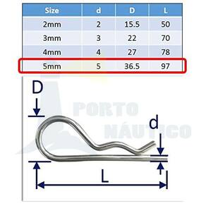 Pino Contra-Pino Beta Em Aço Inox 316 5MmClipes R pino para presilhas, contra pinos e outros pinos de articulação, normalmente usados para fixar estruturas de cobertura e outros itens montados no convés do seu barco que precisam de remoção fácil. Fabricado em aço inoxidável 316 de qualidade marítima, como seria de esperar. Os pinos beta têm vantagens sobre os pinos divididos, pois são totalmente reutilizáveis, fáceis de instalar e remover repetidas vezes